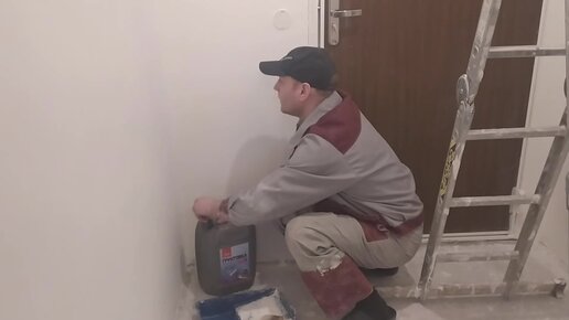 Грунтовка потолка и стен перед покраской - снято на видео. Ремонт коридора ч. 20