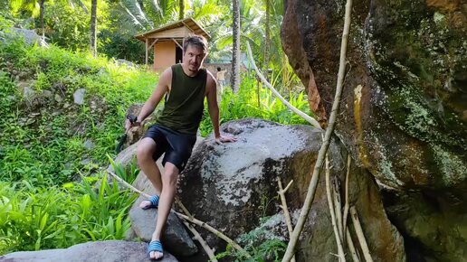 Я и Дмитрий Вест залезли на большой камень в джунглях