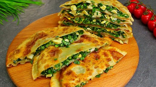 Когда много зелёного лука и нет фарша: беру муку, кипяток, яйца и чебуреков не надо, так вкусно получается