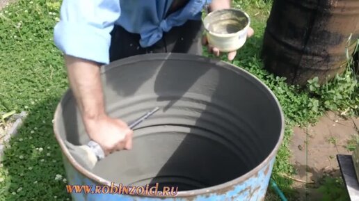 Чем покрасить бочку для воды. Я этот вопрос для себя решил цементом марки 400. Бочка не ржавела долго. И дёшево и сердито.