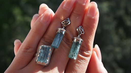 Комплект с кристаллами аквамарина. Подробное видео изготовления.
