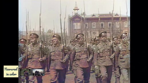 Парад Белой армии с английским и французским вооружением. Барнаул. 15 июня 1919 г.