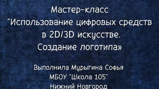 Мурыгина Софья. Мастер-класс "Использование цифровых средств в 2D и 3D искусстве". Создание логотипа.