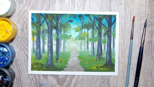 Как нарисовать лес гуашью