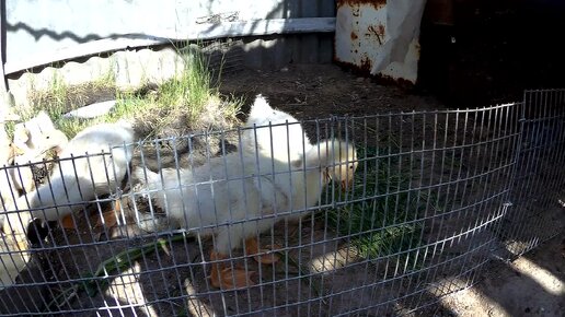 Птичий двор. Часть 10. Некоторые утята догоняют по размеру гусят.