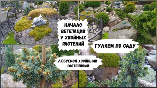 Начало вегетации у хвойных растений.Гуляем по саду, любуемся хвойными.