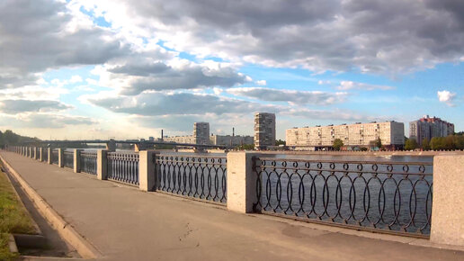 Набережная Невы на окраине Петербурга, съемка с руля велосипеда.