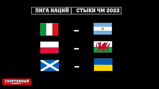 Италия - Аргентина, Украина - Шотландия, Польша – Уэльс | Лига Наций / ЧМ 2022 стыки.