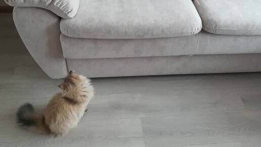 Кошка играется на диване