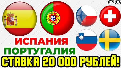 СТАВКА 20 000 РУБЛЕЙ! ИСПАНИЯ - ПОРТУГАЛИЯ. ЧЕХИЯ - ШВЕЙЦАРИЯ. СЛОВЕНИЯ - ШВЕЦИЯ. СЕРБИЯ - НОРВЕГИЯ. БОЛГАРИЯ - СЕВЕРНАЯ МАКЕДОНИЯ. ПРОГНОЗ