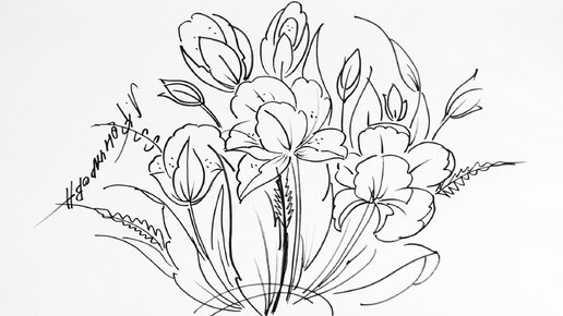 Эскиз 06. Скетчинг черным маркером. Как просто нарисовать цветы. Поэтапный мастер-класс из Жостово