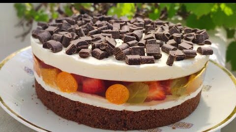 Торт ФРУКТОВАЯ ШКАТУЛКА без выпечки с желейной прослойкой чизкейк с фруктами (2)