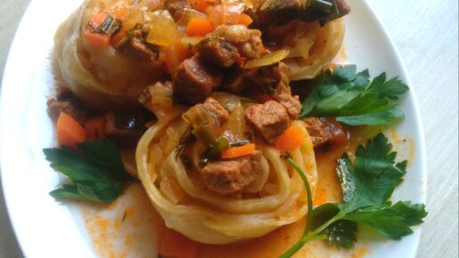 Луковые розочки с острой мясной подливкой,бюджетное и очень вкусное блюдо!