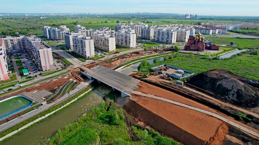 Обзор строительства набережной с мостом через реку Подстепновка в Южном городе