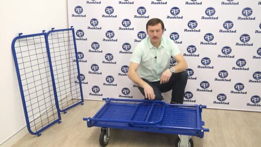 Платформенные тележки RUSKLAD ТС РС со складной ручкой и съемными решетчатыми бортами для работы в магазине, на складе или производстве