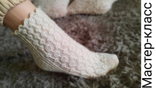Подробный мастер класс!Носочки с рюшей и красивым узором