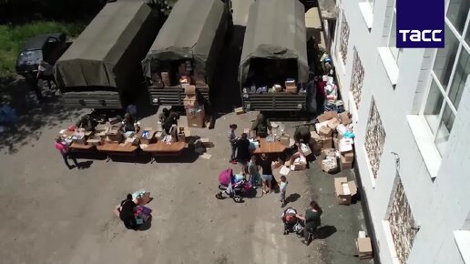 Российские военнослужащие доставили гуманитарную помощь в город Первомайск Луганской Народной Республики