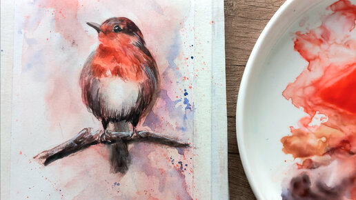 Рисуем птицу акварелью. Уроки рисования акварелью.