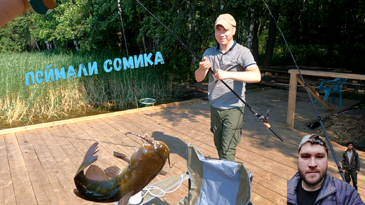 Пошли на рыбалку и сразу поймал маленького сома