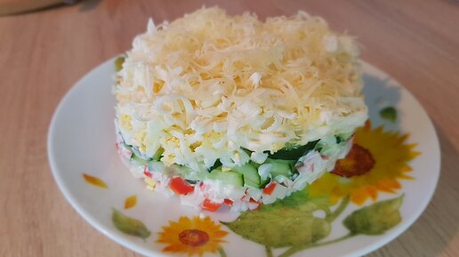 Сытный и очень легкий в приготовлении салат с крабовыми палочками