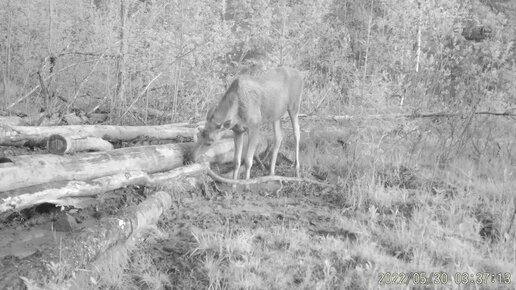 Фотоловушку поставили на солонец, день второй опять много лосей и даже кабанчик зашёл в гости.
