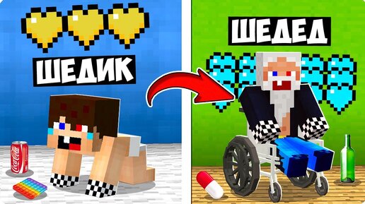 👶👴Я ПРОЖИЛ 100 ЛЕТ ЗА ШЕДИ МЕНА В МАЙНКРАФТ! ШЕДИ ЛЕСКА И НУБИК ЖИЗНЕННЫЙ ЦИКЛ ДНЕЙ MINECRAFT