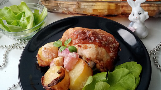 Запеченый в духовке редис с картофелем и курицей