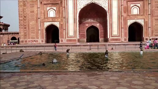 Счастливые обезьяны ныряют в бассейн в Тадж Махале. Агра. Индия. 29.05.2022.
