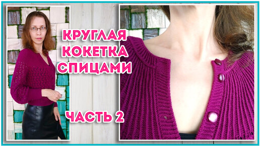 Женская кофточка спицами цвета Баклажан. Вязание из вискозы / Часть 2