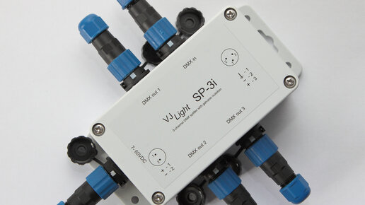 IP68 (IP67) DMX сплиттер 3 выхода с двойной гальванической развязкой и индикаторами питания/входящего сигнала DMX VJLight SP-3i.