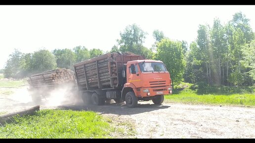 Вывозим лес, КАМАЗ с КМУ. На прицепе взорвалось колесо. В дороге встретили косуль.