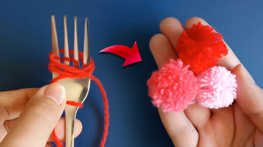 Помпоны с помощью вилки ✨ Пушистые мини помпончики из пряжи