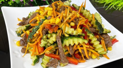 Вкуснейший салат с мясом на праздничный стол. Рецепт этого салата будут просить все гости.