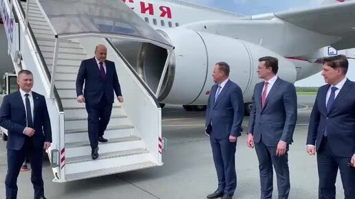 Встреча Михаила Мишустина у трапа самолёта в Нижнем Новгороде