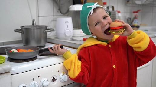 Ребенок проголодался и приготовил вкусную еду на сковородке для голодной мамы