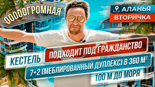 Меблированная квартира 7+2 с видом на море и горы в 100м от моря, район Кестель