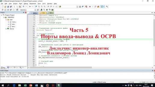 Программирование микроконтроллеров серии 1986BE9x. 5.Keil uVision. Порты ввода-вывода & ОСРВ