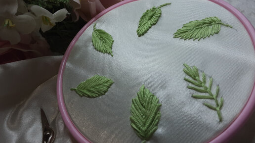 Вышивка.Как вышить большие листья.how to embroider large leaves.