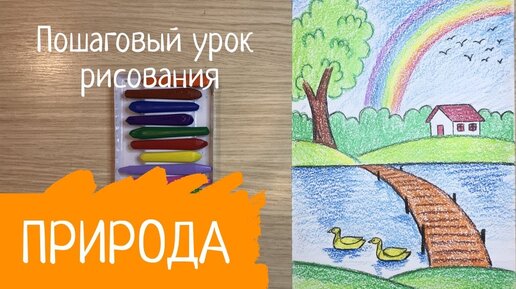 Рисунок природы. Рисунок лето. Как нарисовать лето Удивительный мир рисунок пейзажа Рисунок деревни. Карандаши и краски