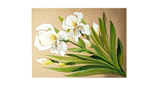 Белые ирисы - рисунок гуашью на крафтовой бумаге.