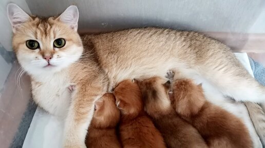 Кошка Патрисия разговаривает со своими маленькими котятами I 4 котенка I Милое видео