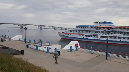 Теплоход Валерий Чкалов причаливает в Саратове на Волге