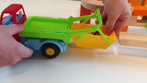 Шарики и Мусоровоз Marble run race satisfying, wooden slope Trix Track with big marbles and garbage truck