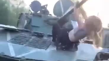 Прекрасная девочка Эрика встречает русских десантников в Харьковской области. Счастливый ребёнок рад видеть вежливых людей.