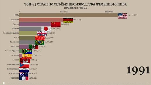 ТОП-15 стран по объему производства ячменного пива