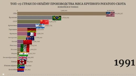 Топ-15 стран по объему производства мяса крупного рогатого скота