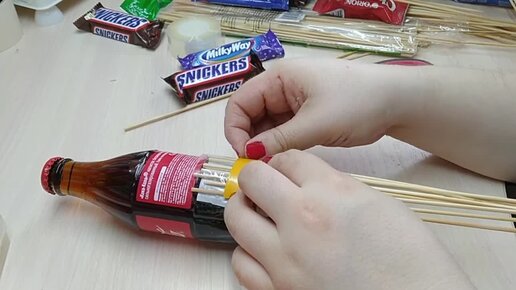 Букет из конфет! Сделала красивый букет из газировки и конфет в подарок на день рождения.
