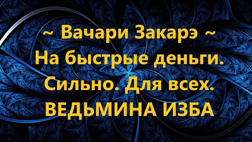 ВАЧАРИ ЗАКАРЭ...НА БЫСТРЫЕ ДЕНЬГИ ..СИЛЬНО..ДЛЯ ВСЕХ_ВЕДЬМИНА ИЗБА_ИНГА ХОСРОЕВА
