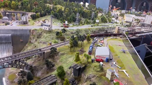 Проезд грузового поезда по мосту Гранд-макет Россия 2019 года