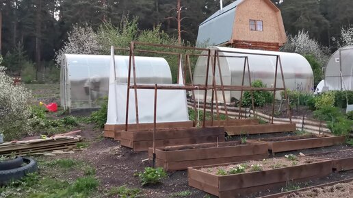 2 июня доделали перекладины на грядках. Посадили кукурузу